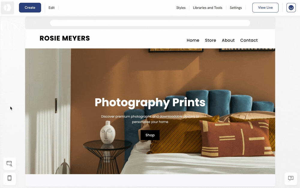 You can easily customise how your portfolio website appears on mobile devices. In Portfoliobox, you have the flexibility to edit styles for a single element or apply global mobile styles to all elements of the same type.