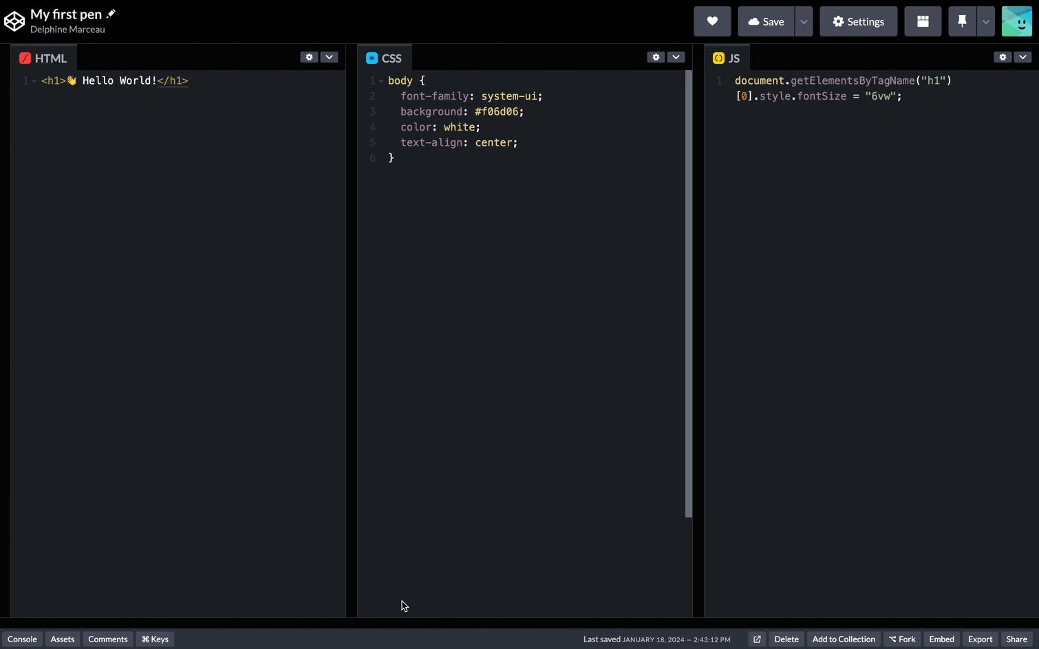 - Login to your Codepen account.
