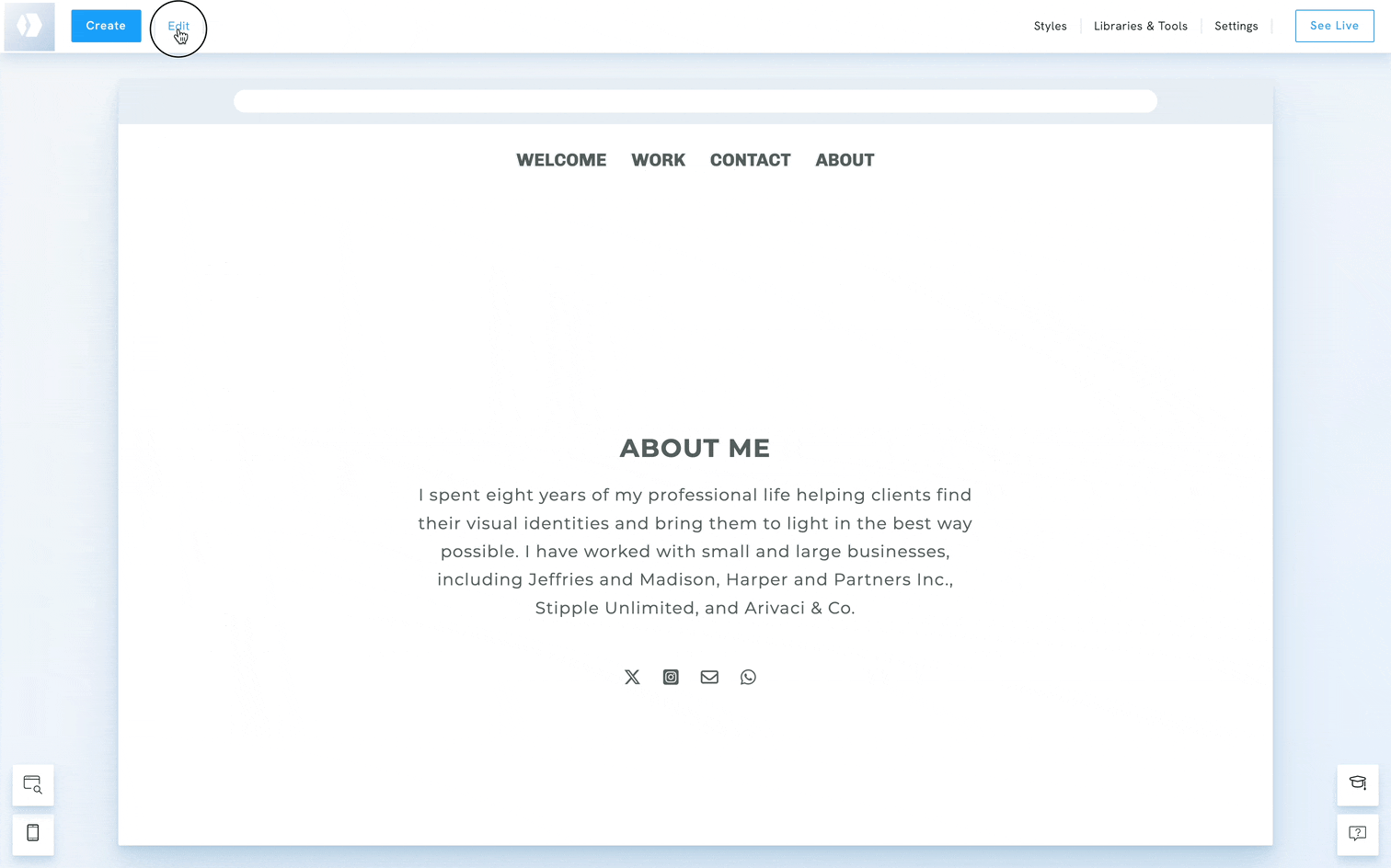 By default, your portfolio website includes a main menu displayed at the top of every page. However, you might want to change its position or hide the menu on certain pages, for example, on a landing page, gallery, or password-protected page, to create a more focused or minimal layout.