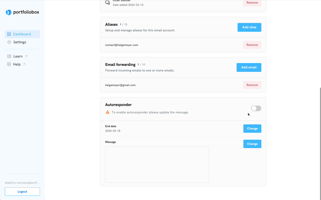 Setting up an autoresponder in your Portfoliobox email account lets you automatically reply to emails, informing senders of your unavailability and when they can expect a response. Here's how to set up an autoresponder to keep your communication professional.