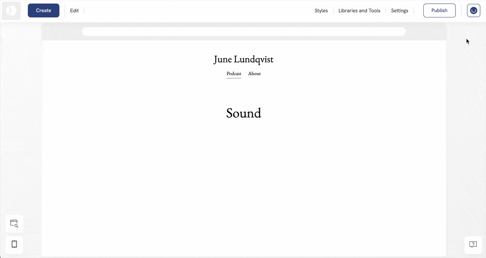 There are several ways to use audio files in your portfolio. You can create a dedicated page or add an audio element to an existing page.