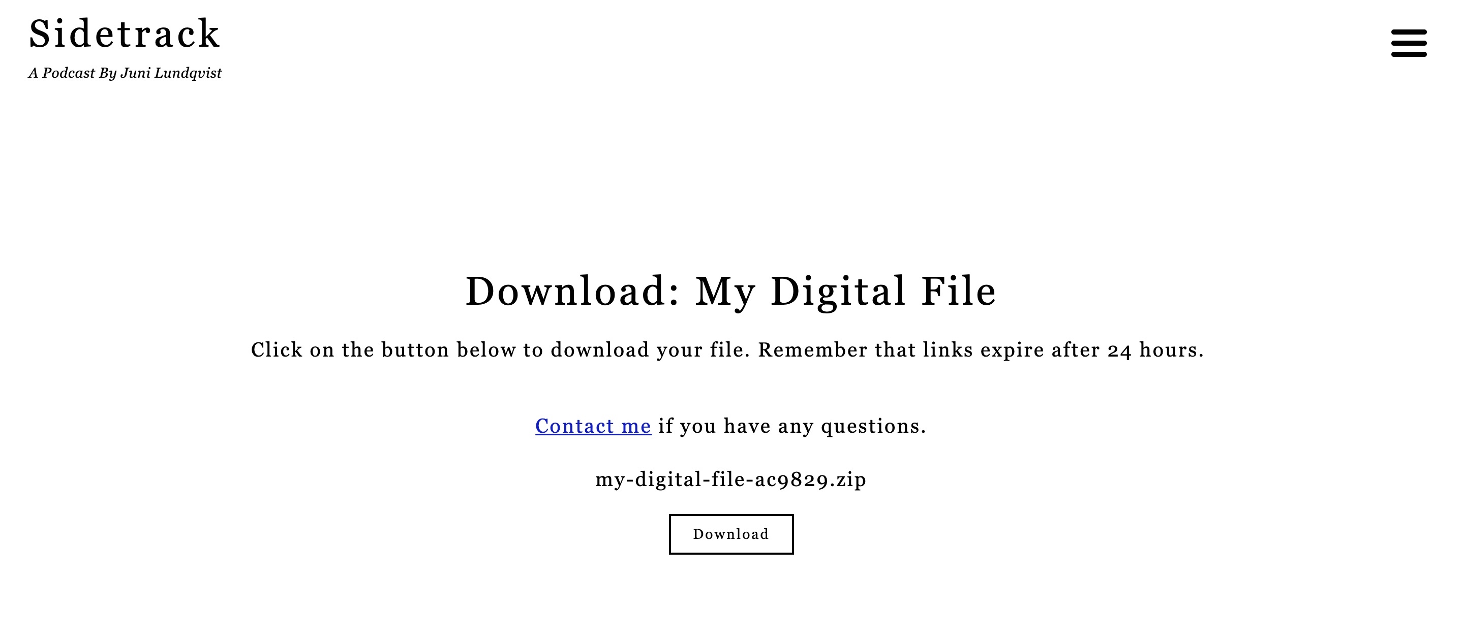 Your customer will be redirected to a download page on your portfolio. This page displays the title and description of your file.