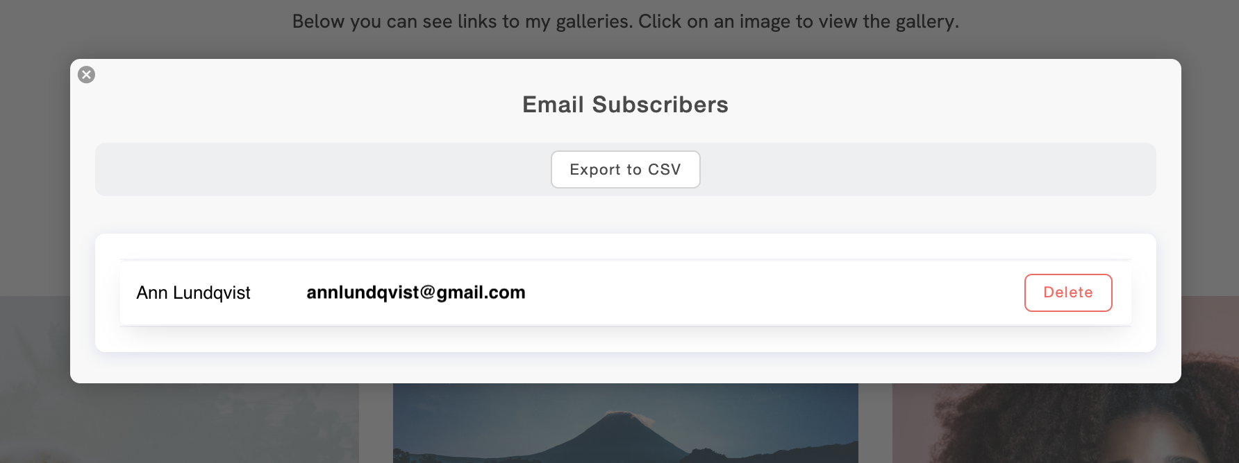 You can see all email subscribers and export a CSV file under Settings → Email subscribers.